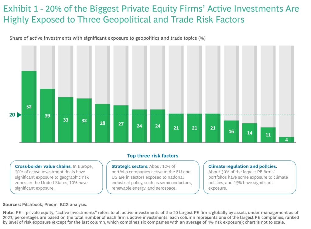 Private markets inherently subject GPs to greater discipline and risk management than the public markets where investors can cut losses and move in and out of positions intraday, within weeks or months; whilst Private market opportunities are illiquid and held up for longer. What this means is that fundamental forces, such as rate cycles, geopolitical and regulatory divergences, supply chain dynamics and political developments shape the landscape that leveraged investors are looking to exit in ten years down the road. A recent analysis by BCG found that 20% of the largest PE funds are exposed to significant geopolitical and trade risks, yet most have not invested as significantly in “geopolitical muscle” nearly as much as the animal spirits drove them to rapidly expand business function. As much as technicals, financial understandings are critical within the investment landscape, it is naive to believe that a manager who lacks active involvement and understanding of the multidisciplinary world will be able to adequately understand the climate he tries to exit in, a decade later.