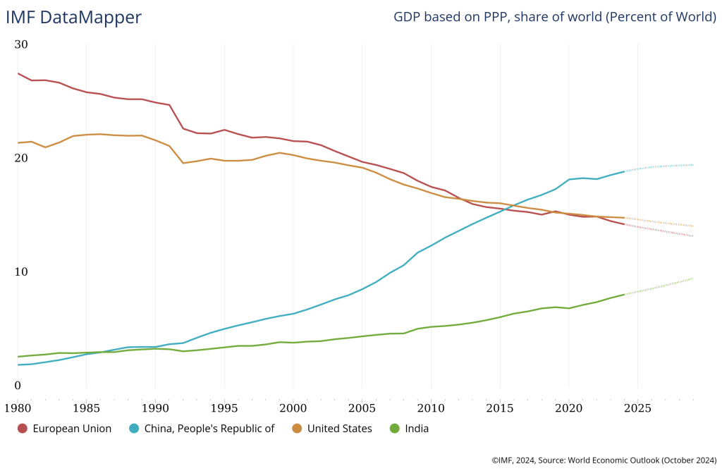 What is often misconstrued around this topic of contention is the notion that fading exceptionalism equates to an immediate irrelevance or inevitable free fall; such a construct neglects enduring pillars of American strength: robust regulatory frameworks, entrepreneurial ecosystem, demographic openness (or attrativeness), a culture of innovation, deep financial markets and a network of alliances still, because the alternative to an American-led global order is one that is much less attractive to most Western nations. While China may surpass the US in global GDP share, the US’ alignment with other economies (EU, Japan, Korea) means it continues to exert strategic influences in different spheres around the world, forming a powerful coalition that still commands much of the global technological prowess and innovation. The resilience and dependence on military alliances means the US will continue to leverage a reach no other country will have. The frameworks for thinking about the US role hence should not be one of a either-or dyad, but about the world moving away from an ephemeral period of solo hegemony post-Cold war towards a multipolarity with near-equals.