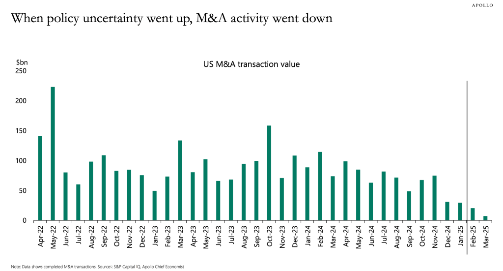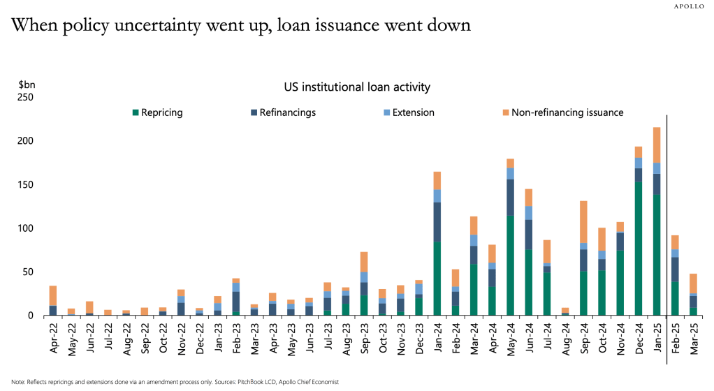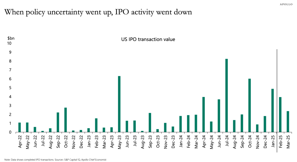 Moreover, it is neither comforting to note that Moody’s conventionally downgrades companies after debt-funded dividends are paid, recognising the negative impact on companies’ financial profile. The near term economic outlook is neither one of rosiness and clarity — the EV/EBITDA ratios remain largely in line with historic trends whilst the Fed Funds Rates remains sticky; consumer sentiment dips and IPO frequency fails to buoy. Continued jingoism by the United States towards its allies, threats and trade tensions create greater headwinds towards generating attractive macro conditions in the near term, and Trump has also acknowledged there would be harsher conditions for the time being.