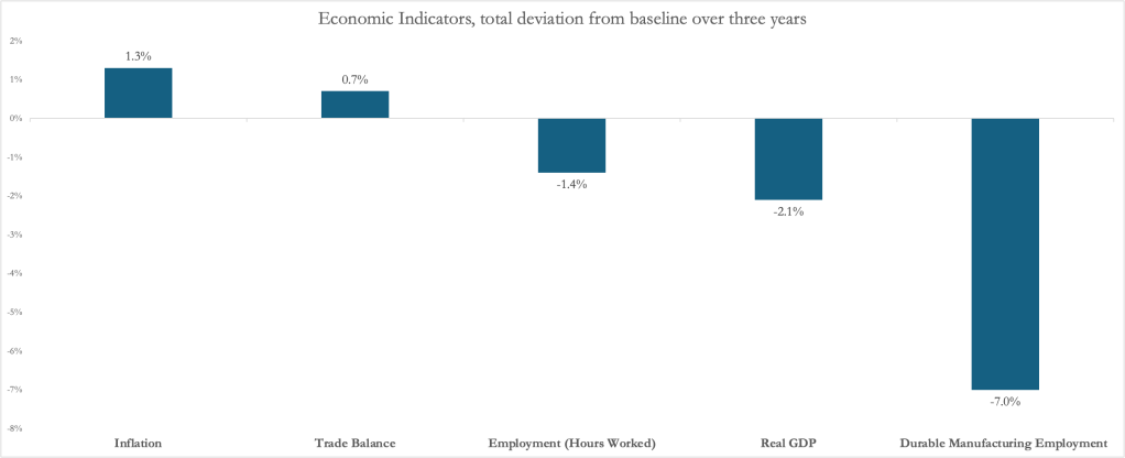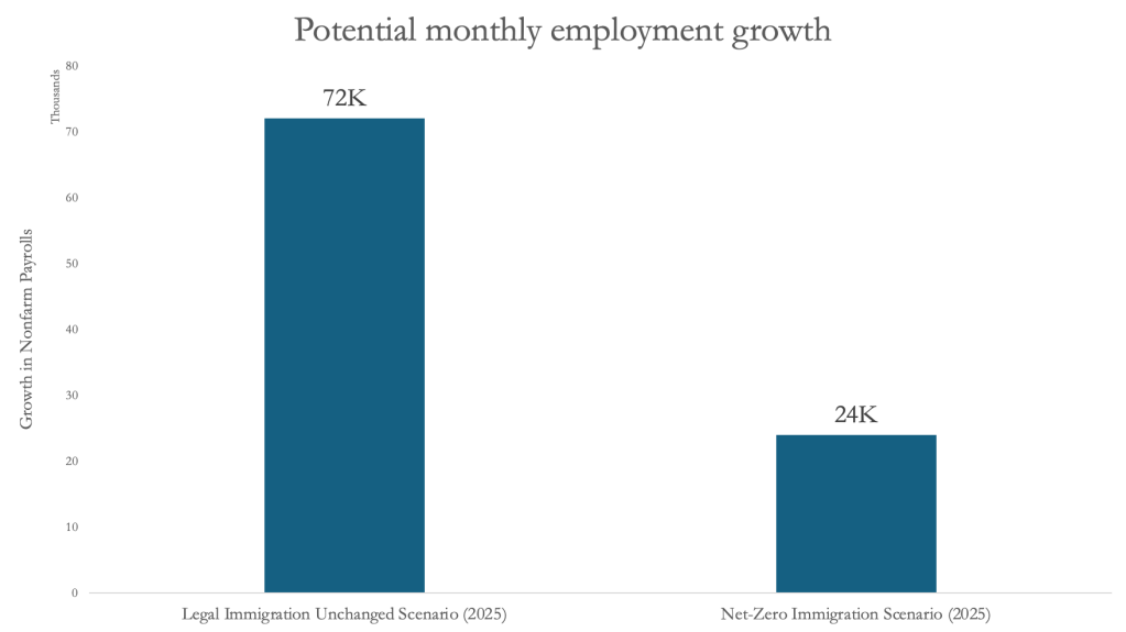 By engaging in employment, immigrants disproportionately benefit the economy because they tend to be in prime working ages and are more likely to start businesses. At the same time, they contribute significantly to economic growth and growing the size of the labour force; the benefit of immigrant participation in the US economy in 2022 was measured at $1.6 trillion in added economic activity and over $579 billion in local, state and federal taxes, according to the Council of Foreign Relations. At the same time, immigrants also face inhibitive restrictions on access to social welfare programs funded by the Federal government, such as Medicaid, food stamps and the Supplementary Security Income scheme. All in all, a cumulative deportation of over 1.3 million immigrants, who contribute immensely to the nation’s economic growth, talent development and taxes paid whilst receiving minimal Federal assistance, would increase inflation sizeably due to the tightening labour market conditions and contracts the real GDP and employment statistics.